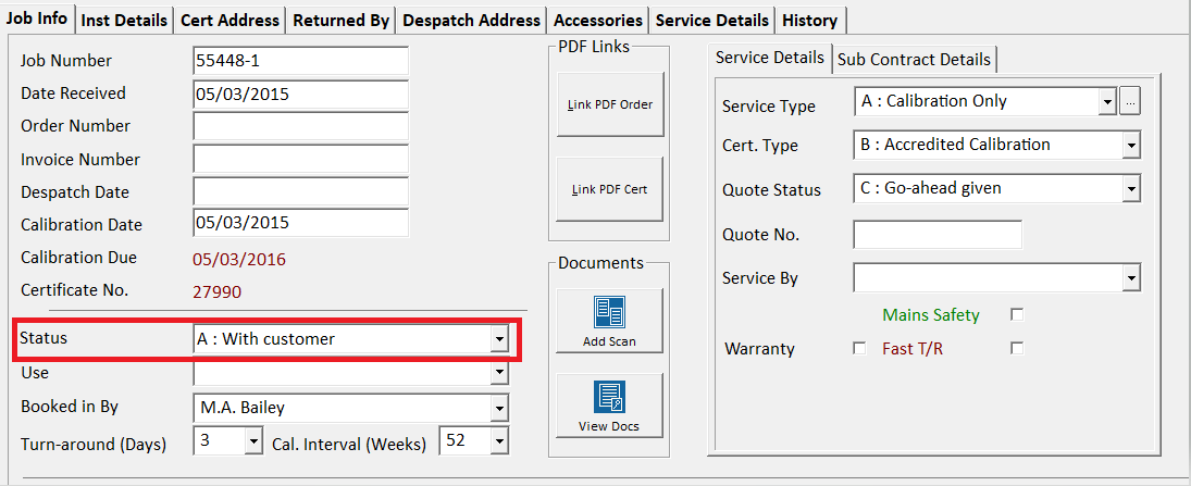 - Open the instrument's virtual job sheet. Please see this article for a guide on how to do this: https://support.transmille.com/solution/articles/9000161912-how-to-search-for-and-view-an-instrument-in-procal-track