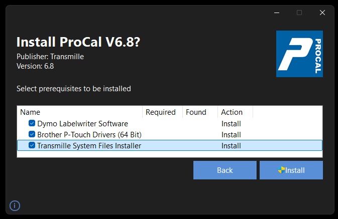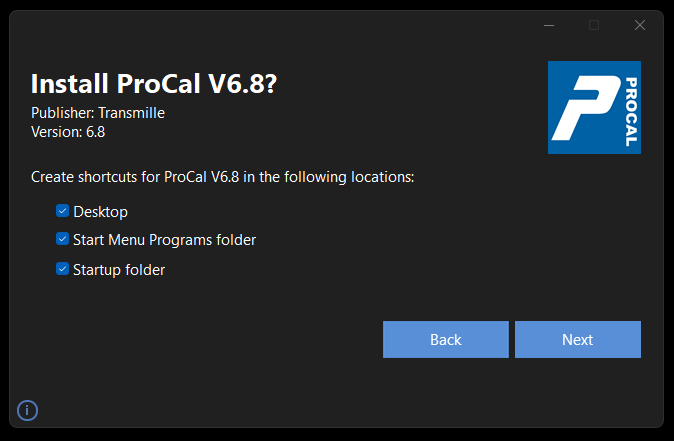- Download the installer: Transmille ProCal Suite Client Installer (Dropbox link)